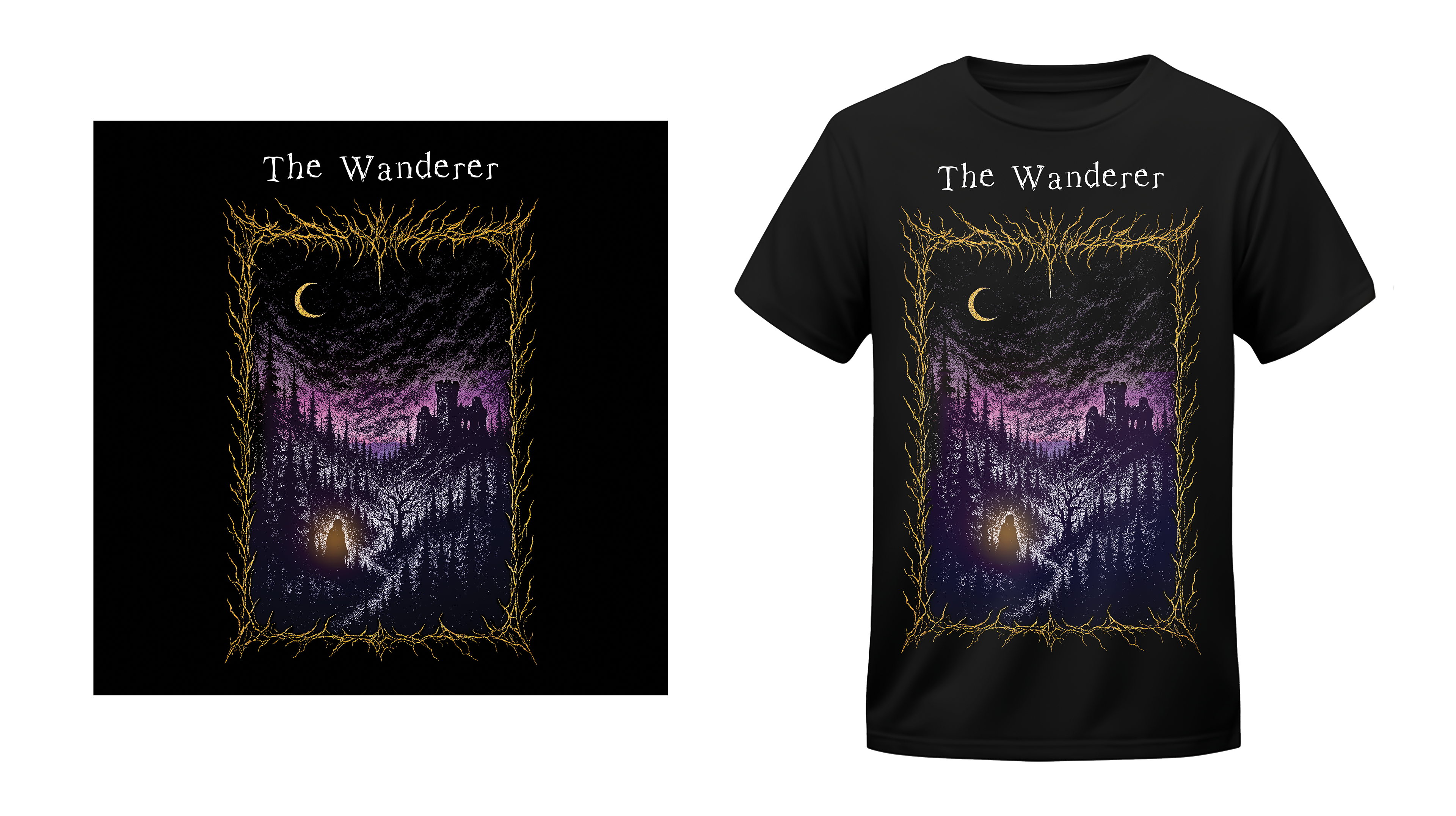 Apparel-focused design work created in Adobe Photoshop for an eCommerce clothing company. The T-shirt graphics were developed from artwork provided by collaborating illustrators and refined into polished, print-ready pieces. It also includes concept submissions for the Celestial Haunts Academy Fall 2025 campaign, shaped by the brand’s playful, otherworldly aesthetic.